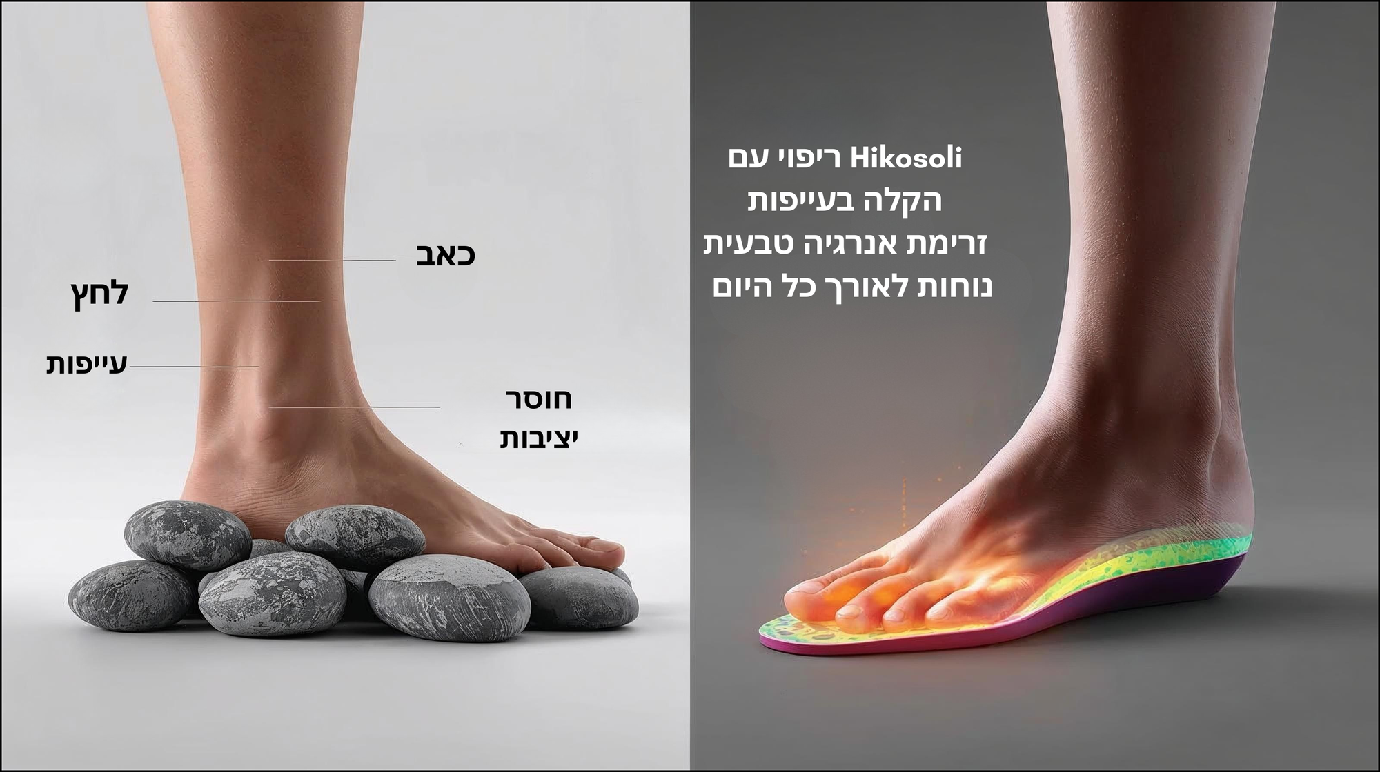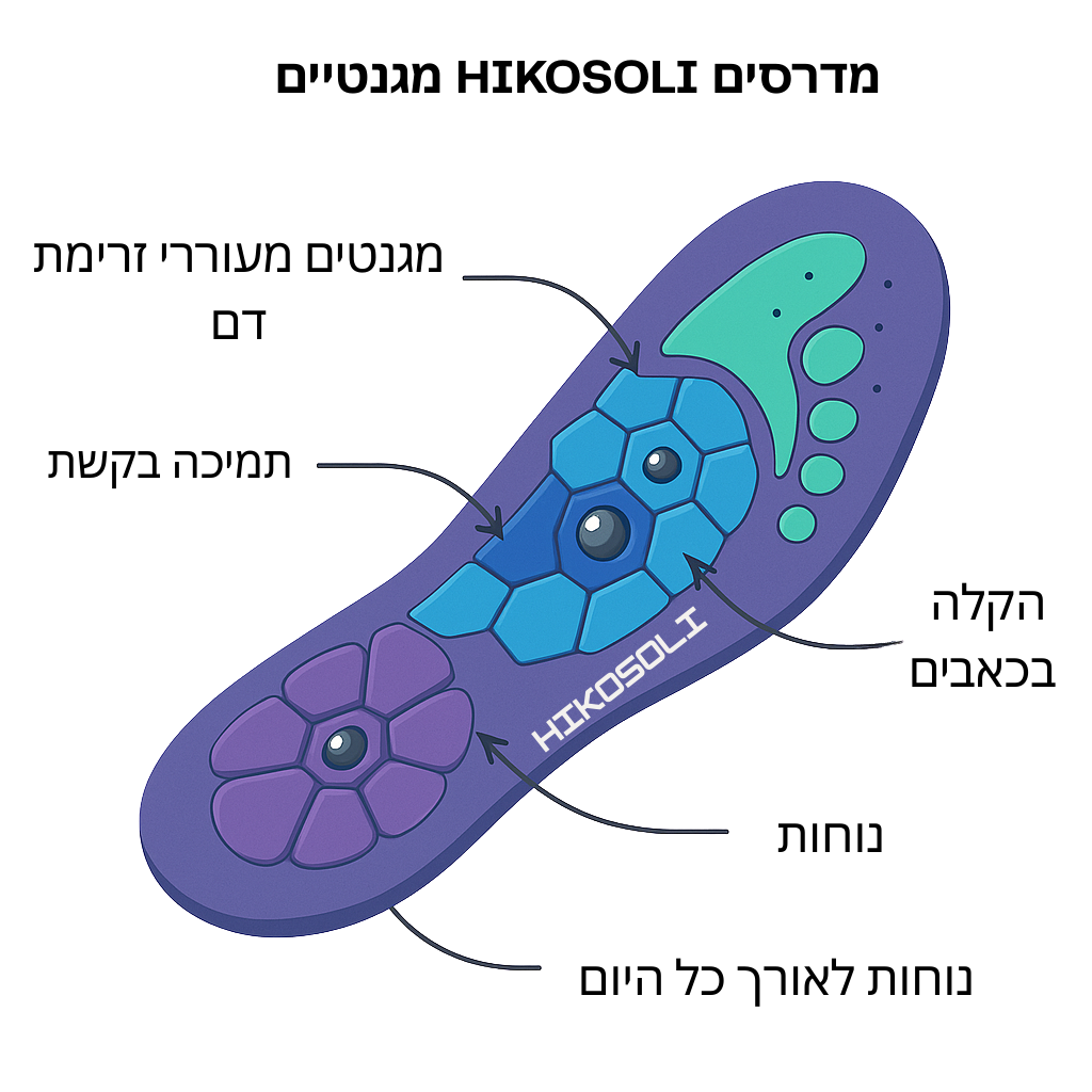 שחררו את הרגליים מלחץ וכאבים בעזרת מדרסי Hikosoli. מגנטים מעוררי זרימת דם, תמיכה מלאה בכף הרגל, ונוחות לאורך כל היום.